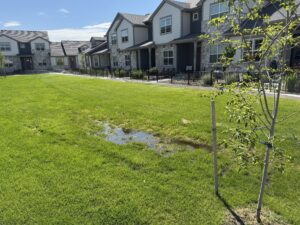 The turf in the greenbelt that splits the community is heavily saturated. Residents say it runs multiple times a day. Please ensure this is taken off the sod program and does not run during the day.